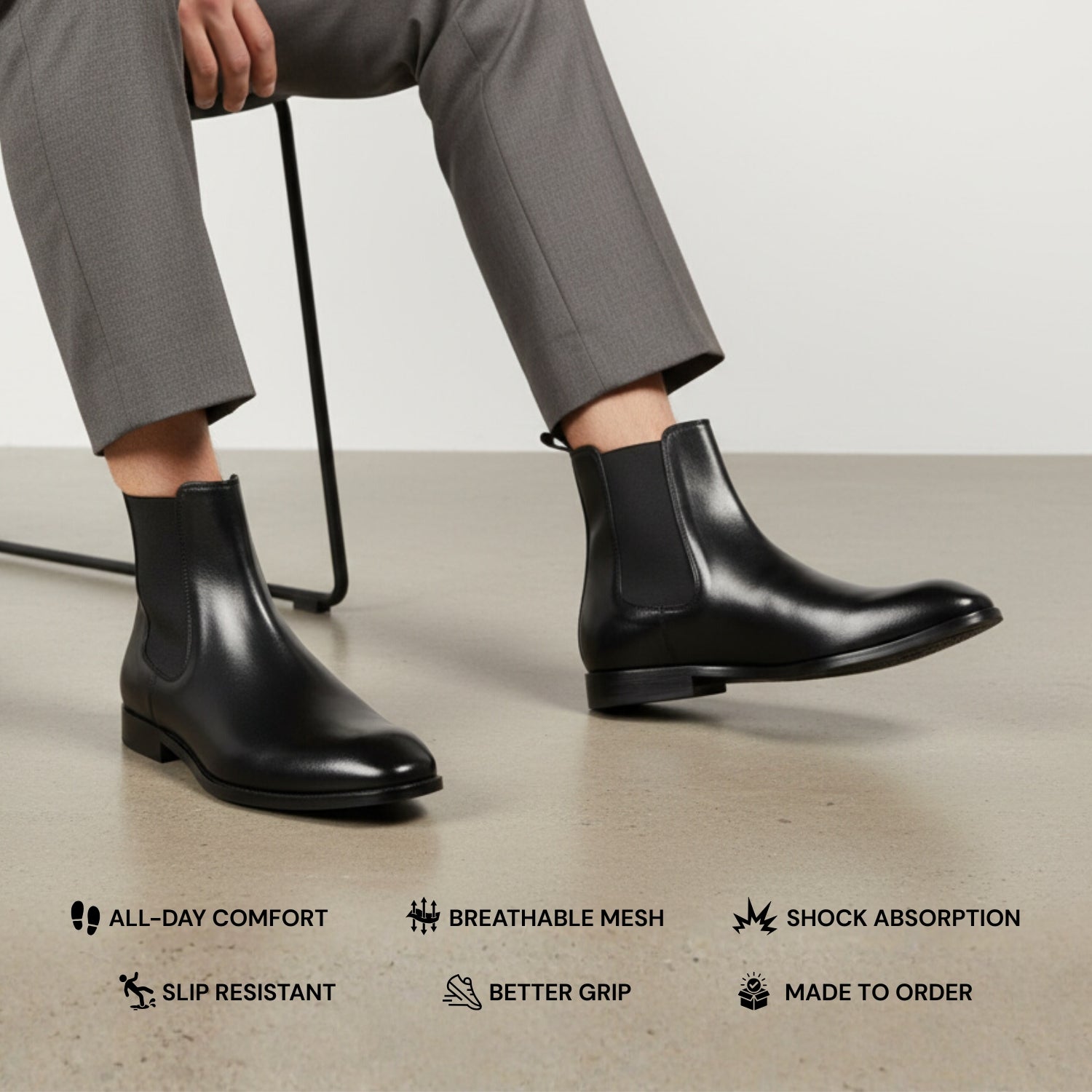 Step into timeless style and unmatched comfort with The Classic Chelsea Boot. Crafted from genuine, high-shine black leather, this iconic ankle boot is an essential addition to any discerning gentleman's wardrobe. Perfect for both formal occasions and elevated casual wear, these boots embody premium craftsmanship and modern sophistication.