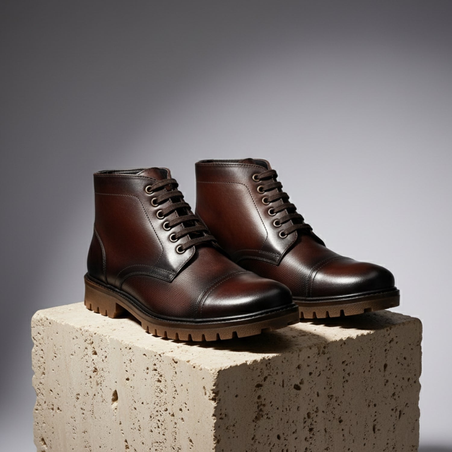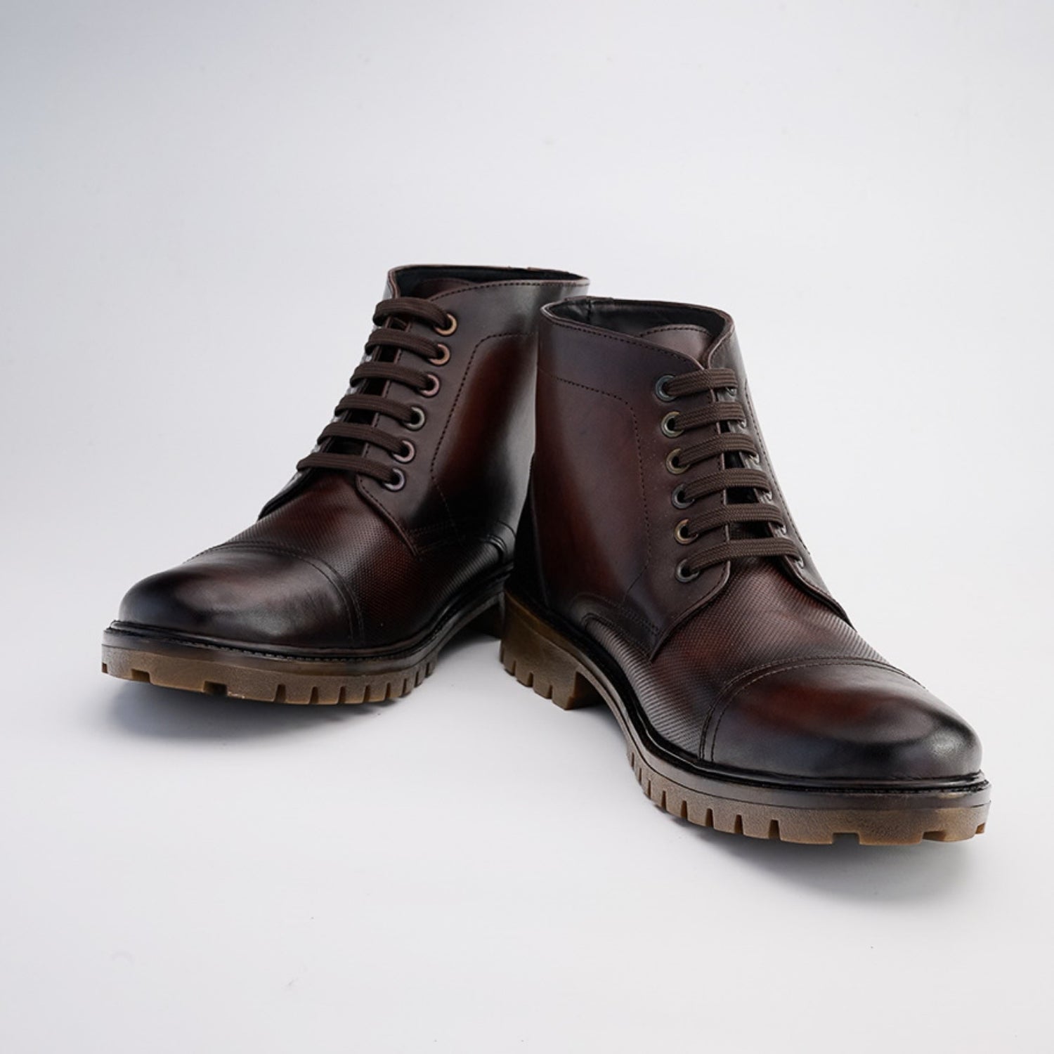 The Aryaki Leather & Lux – Toe Cap Boot Mid Print blends classic craftsmanship with modern edge. Made from premium handpainted leather, each pair boasts unique depth of color and artisanal character. The mid-height design and toe cap detailing add structure and presence, making it a standout choice for both casual sophistication and refined ensembles.