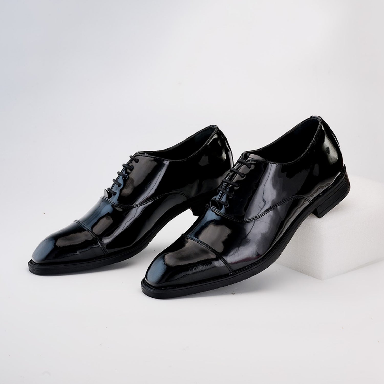 and modern finesse. Expertly constructed from LWG-certified high-shine Italian bull leather, this iconic cap-toe silhouette embodies refined taste and elevated style. The clean closed-lacing system, paired with precision-cut detailing, brings a sharp, contemporary edge to a timeless classic.
